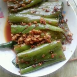 4. Heat the pot over low heat, add oil, then put the peppers into the pot and slowly add the peppers.Fry both sides until browned and the peppers are soft and flavorful.Serve on a plate