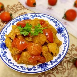 8. Heat the pan with cold oil, add minced garlic and saute until fragrant, add tomatoes and sauté for 5 minutes.Add salt and sugar and stir well.