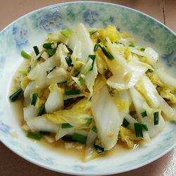 2. Cut off the heads of the baby cabbage and peel it into slices.Soak in salt water for twenty minutes, rinse and drain.