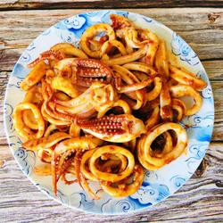 10. Take it out of the pan and put it on a plate, and the delicious spicy fried squid is ready.