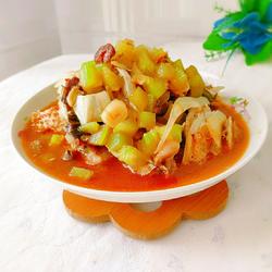 1.Picture of the finished fish head stewed with lettuce