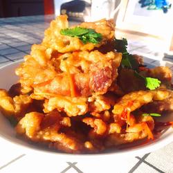 6. Heat the oil in the pot, add the meat slices when the oil is 70% hot, and fry over medium-low heat until golden brown