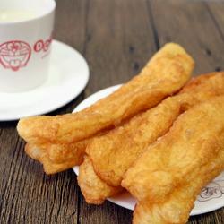 7.Pinch the two ends of the fried dough sticks and gently pull them into the oil pan.