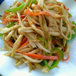 10.Add king oyster mushrooms, carrots and green peppers and stir-fry for about a minute