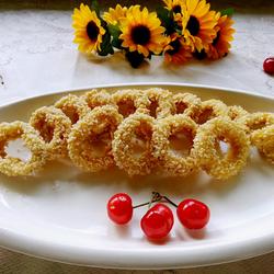 8. Heat oil in a pot until 50% hot water and fry the squid rings until both sides are golden