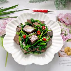 12.Plate it on a plate and take a picture of the finished product.A delicious and easy-to-go-rice stir-fried duck blood with leek is completed.