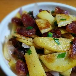 Just add seasonings to the potatoes.There is no need to add seasonings to the sausages, and there is no need to add too much oil.The sausages will be fried with just the right amount of oil so that they are not too greasyCopyright Statement:This article is a reprinted article, and the copyright belongs to the original author. Please retain the source when reprinting!