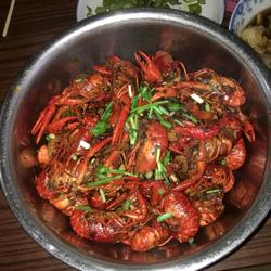 4.Put in another clean pot, heat the base oil, add 45 grams of sugar and boil it Yellow, add 20 grams of dried chili, 10 pieces each of Sichuan peppercorns, onion and ginger, 150 grams of single head garlic and stir-fry until fragrant, then add oiled crayfish, 1 bottle of beer, 100 grams of salad oil, 15 grams of bean paste, Stir-fry 10 grams of sweet noodle sauce evenly, add 20 grams each of salt, MSG, and chicken essence, and 150 grams of the second soup to taste.Cover and simmer for 12 to 15 minutes, simmer over low heat, and reduce the juice over high heat.