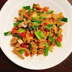 6. Add oil again, you can add a little more, add chili rings and garlic Crush and tempeh, stir-fry until fragrant, add lean meat, stir-fry until 7.8 mature, pour in the drained oil residue, pour a small amount of cooking wine and light soy sauce along the edge of the pot, then add garlic leaves, and then add an appropriate amount according to your own taste Salt, stir-fry until the meat is cooked and remove from the pan.