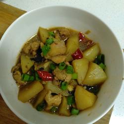 9.Add water to cover the chicken pieces and potatoes, and bring to a boil