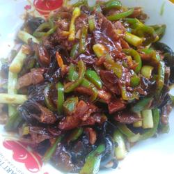 1.Cut garlic into sections, shred peppers, wash and soak fungus.Add a little cooking wine to the pork, marinate it with salt and starch for ten minutes, and cut into shreds if there are carrots, I don’t have any~