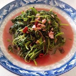 4. Add amaranth and stir-fry, add seasonings, Fry until cooked and ready to serve
