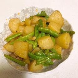 7. Pour in and prepare Stir-fry the beans and potatoes for a while