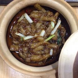 7. Pour in the eggplant and stir-fry for a few times.Pour in the seasoning you just prepared and stir-fry until it is ok.Yes, you can also simmer it in a casserole