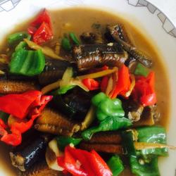 4. Stir-fry until fragrant, add eel segments and stir-fry.Add appropriate amount of cooking wine, sugar and soy sauce and stir-fry until colored.Add water to cover the eel.Section