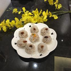 13. Put your favorite decoration on each meatball.Put the steamer into a steamer with boiling water, cover and steam over high heat for 20 minutes.