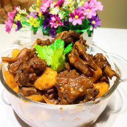 4. Add the goose, Lee Kum Kee dark soy sauce, first-grade fresh soy sauce, and sugar.Add water to cover the goose meat, add bean paste, turn to low heat and simmer for more than half an hour, until it can be poked with chopsticks.Cut the potatoes into pieces in advance, boil them in water until they are half cooked, then add them to the goose
