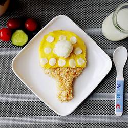 4.Pour some rice into appropriate amount of children's soy sauce and fry until cooked