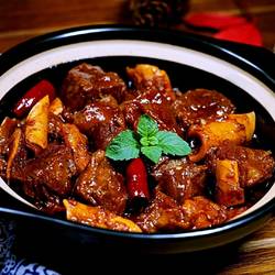 6. Heat oil in a pot, add onion, ginger, garlic, cinnamon, star anise and dried chili pepper Saute.