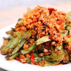 4. Heat 70% of the oil, add the beans, and fry them over high heat.Water until the surface color turns slightly yellow, control oil and remove.