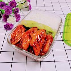 11.Put rice, lettuce and chicken wings into the lunch box, add honey juice The chicken wing bento is ready.