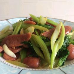 3.Saute until the sausage is slightly rolled, add celery, and then light soy sauce