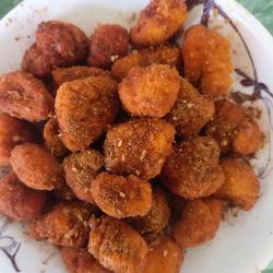 5.Put oil in the pot and add chicken popcorn when it is 40% hot.Fry over medium heat for about four minutes, remove from the pan and sprinkle with barbecue ingredients.