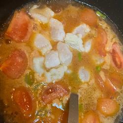 4. Heat oil in a pan, add fish and then pour in the prepared tomato juice.You can also add a few pieces of tomatoes and bring to a boil