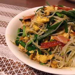 Flowers are red and willows are green ~ Fried eggs with chives and bean sprouts