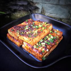 4.The tin foil along the edge of the tofu must be held upright with your hands, otherwise the sauce will spill out and the dried tofu will not taste good.