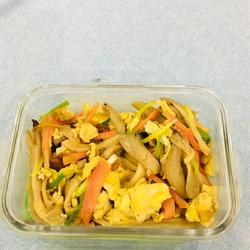 1.Heat oil in a hot pan and pour eggs into the non-stick pan
