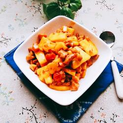 10. Use the base oil left in the pot to fry the tomato paste and white sugar until the sugar is completely melt.