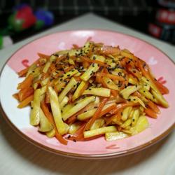 7.Add carrot shreds and stir-fry together
