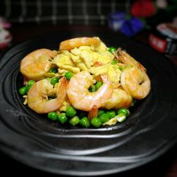 How to make fried peas with fresh shrimps, smooth eggs and fried peas