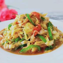 5. Heat the oil in the pan, add the cabbage, stir-fry until soft, and serve.