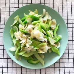 4.Put the blanched celery and lily into the pot, add a little salt and stir-fry Just make it even.