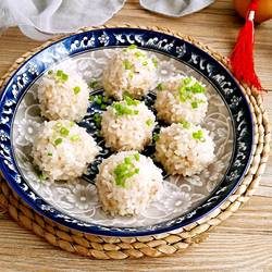 7.Roll in the glutinous rice and reunite it with your hands to avoid the glutinous rice falling during the steaming process