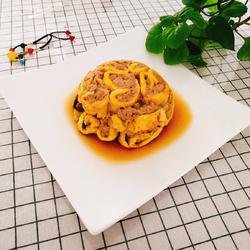 5. Brush oil into the pan, pour in the egg liquid, shake it quickly and spread it out.Egg pancake.