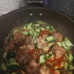 13. Add three-thirds of the chicken to cover it of water (I am afraid that the chicken will burn because the pot is too dry, so I don’t need to add water)