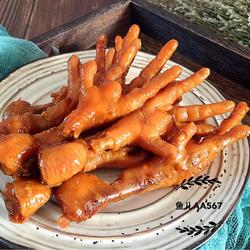 6.Add water to cover the chicken feet, and pour in dark soy sauce