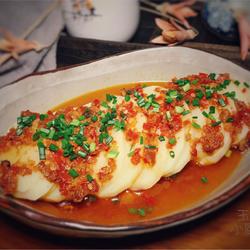 4. Put the code into a plate, pour chopped pepper on top, and heat the steamer over high heat after the water boils Steam for about 15 minutes.