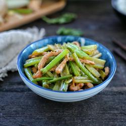 8.Put the celery into the oil in the pot over high heat and stir-fry evenly