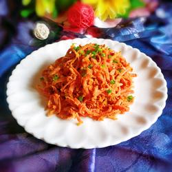 Keep the shredded carrots dry and squeeze out the water, so that they taste tough.The taste can be adjusted according to your own taste.