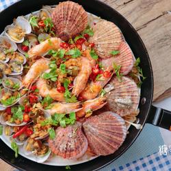 8. Place the shrimps, clams and scallops on the plate in turn and prepare to put them in the pot.Steamed.