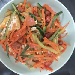 5.Pour in carrots and cucumbers, add salt , oil-consuming seasoning