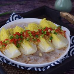 12.After steaming, take it out and sprinkle with chopped green onion and red pepper and serve