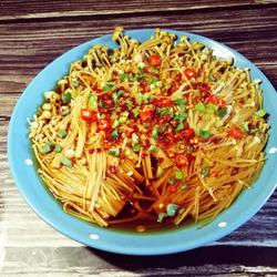12.The rich-colored oil-splashed enoki mushrooms are ready