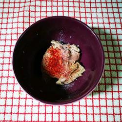 5.Cook the mutton, take it out, put it in a bowl, and sprinkle with salt.Cayenne pepper powder...