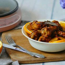 5.Pour in the chicken legs, add the prepared sauce, cover the pot, and simmer the chicken legs for 30 minutes until cooked and tender.Season with salt and pepper.Add oranges before serving.slices for decoration