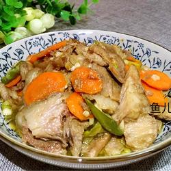 2. Slice the cooked pork knuckle, slice the carrot, cut the pepper into cubes, and mince the onion and garlic.